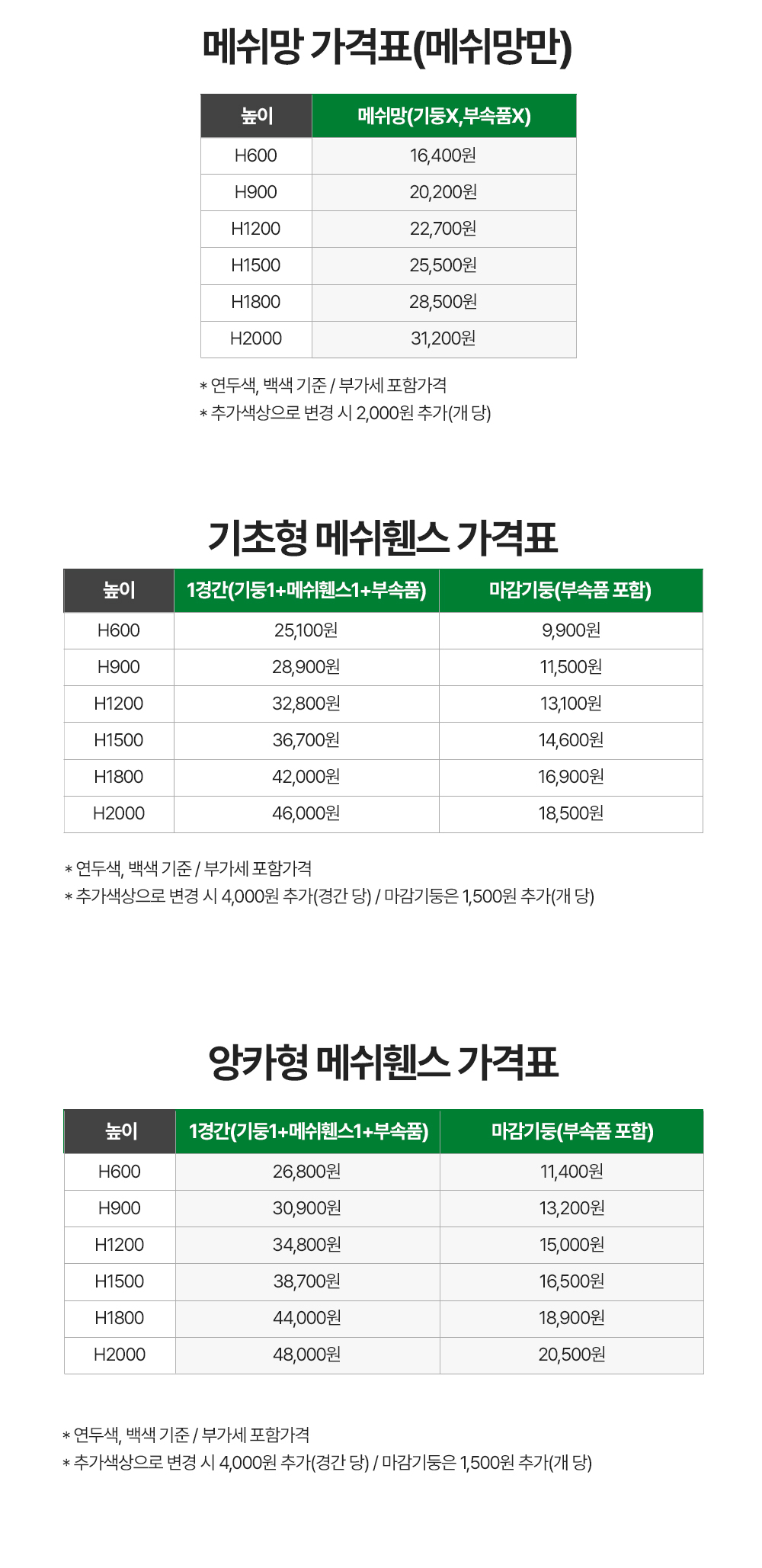 [기초형 메쉬휀스] 1경간당 (검정색) + 4,000원