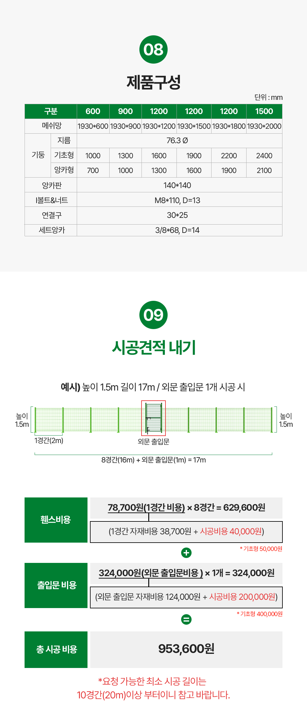 [앙카형 메쉬휀스] 1경간당 (검정색) + 4,000원